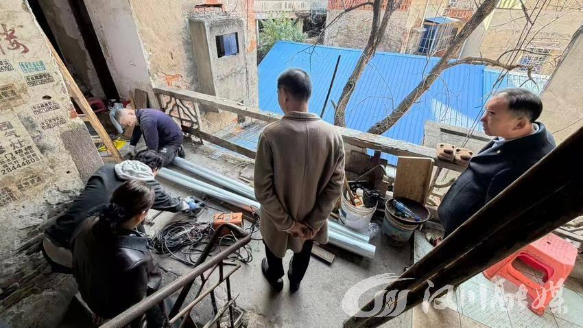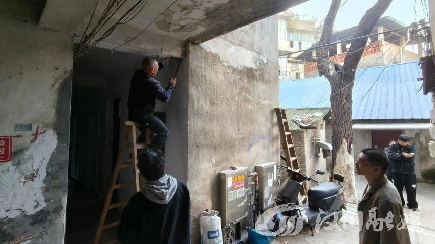 据悉,仙女山街道欢乐街社区织布厂宿舍建于20世纪70年代,属于典型的老旧楼栋。因地理位置狭窄,大型施工设备难以进场,给房屋维修带来极大挑战。社区“两委”班子在日常走访中了解到居民对房屋安全的担忧后,迅速将此事列为重点民生实事,主动扛起责任、牵头推进。