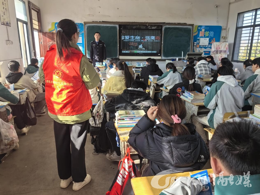 12月3日,湾潭乡派出所联合乡平安办、综治中心、社区戒毒康复中心社工、志愿者,走进湾潭乡三汊中学,举办“禁毒宣传进校园”主题教育活动。