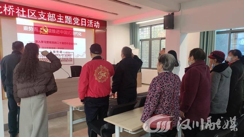 活动伊始,全体党员在北桥社区党员邓念带领下,面向党旗重温入党誓词。随后,社区党支部书记领学《中国共产党章程》,引导党员重温义务责任,明确奋斗方向。