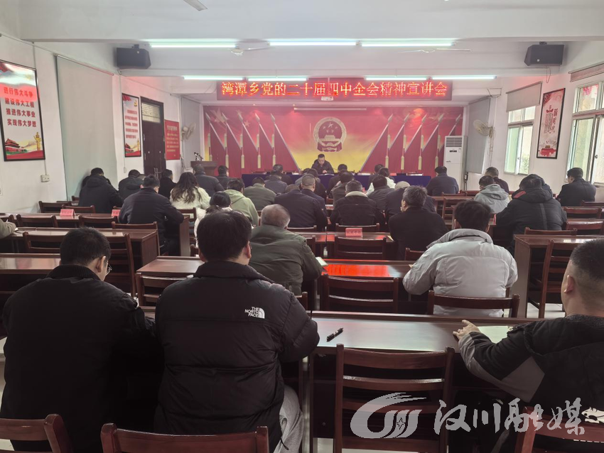 12月4日下午,汉川市湾潭乡举行学习贯彻党的二十届四中全会精神专题宣讲会。汉川市委宣讲团成员、湾潭乡党委书记张志雄作宣讲报告。湾潭乡全体机关干部、乡直部门负责人、11个村支部书记、驻村工作队队长等近百人聆听宣讲报告会。