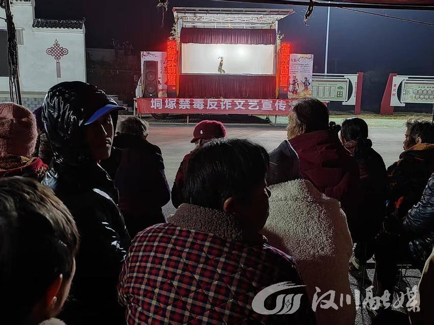 为切实增强村民的禁毒、反诈意识,12月10日,汉川市垌塚镇综治中心联合镇社区戒毒中心、派出所、司法所、社工站,巧妙借助老湾村唱皮影戏这一契机,在村民尽情享受非遗文化盛宴的同时,同步开展禁毒、反诈宣传活动。
