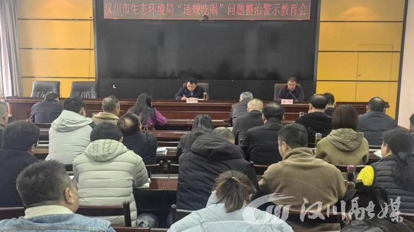12月10日,汉川市生态环境分局组织全体干部职工召开“违规吃喝”问题整治警示教育会。