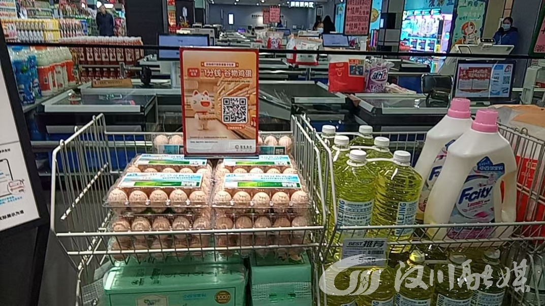 (2) 前往中百仓储,在自助收银机旁的指定区域选择15个新鲜鸡蛋:中百劲购富硒谷物鸡蛋750g(品质有保障,放心挑选)。