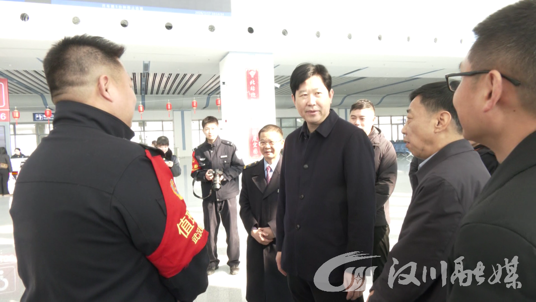 在汉川北站,方超与车站工作人员一一握手,详细了解春运客流、运力保障和便民服务情况,感谢大家用辛勤付出保障旅客平安便捷出行,并希望大家继续提供优质服务,让旅客感受到家的温暖。
