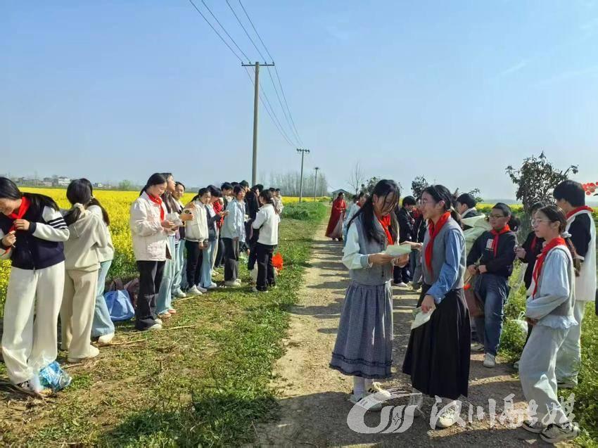 研学过程中,老师们现场引导学生观察油菜花生长形态,讲解农耕文化知识,把课本内容与自然实践紧密结合,让知识在田野间“活”起来。随后,一场别开生面的花海诗词大会温情上演,同学们深情吟诵经典春日诗篇,也踊跃分享自己创作的小诗,稚嫩而真挚的语言,抒发着对自然、对家乡的热爱,琅琅诵读声在花田间久久回荡。