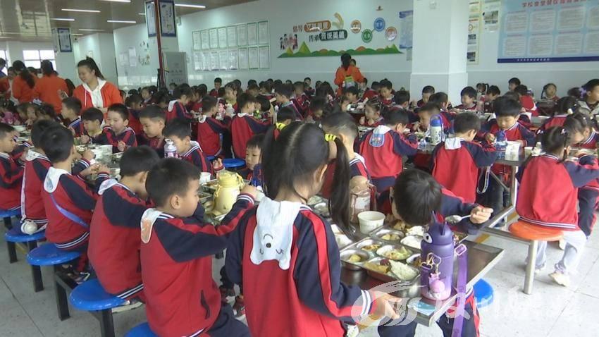 体验活动结束后,各班幼儿前往餐厅就座,享用营养午餐,体验小学的用餐流程。