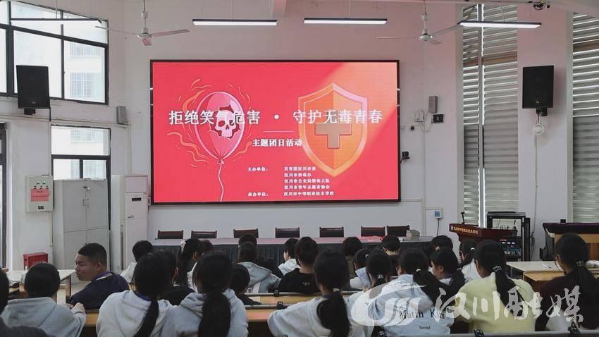 为筑牢校园禁毒防线,4月17日,共青团汉川市委在汉川市中等职业技术学校举办“拒绝笑气危害•守护无毒青春”预防学生吸食笑气主题团日活动。