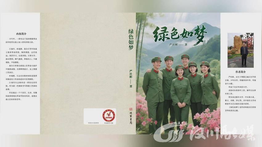 记者张彤:“各位观众好,我是记者张彤,我手上拿着的这本《绿色如梦》,就是湖北籍退役军人严社彬刚刚出版的文学作品。严老虽然已经年过七旬,但是当他谈起书里的故事,眼中仍然常常闪烁着青春的光芒。”