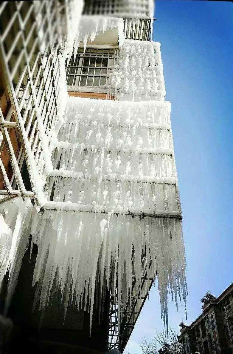 △热水器内胆破裂导致整栋楼形成“冰墙”