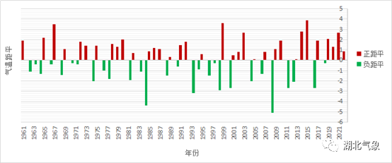 (1961-2021年四九平均气温距平图)