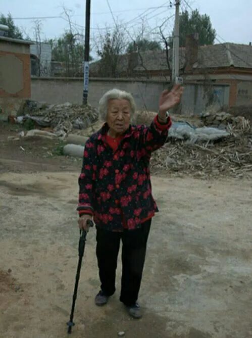 我看见外婆久久地立在门口,睁着一双盲眼望着我们离去的方向。她的右手杵着拐杖,左手高高地扬起,直到我们走到村头的路口,她那高高扬起的左手还没有放下来。