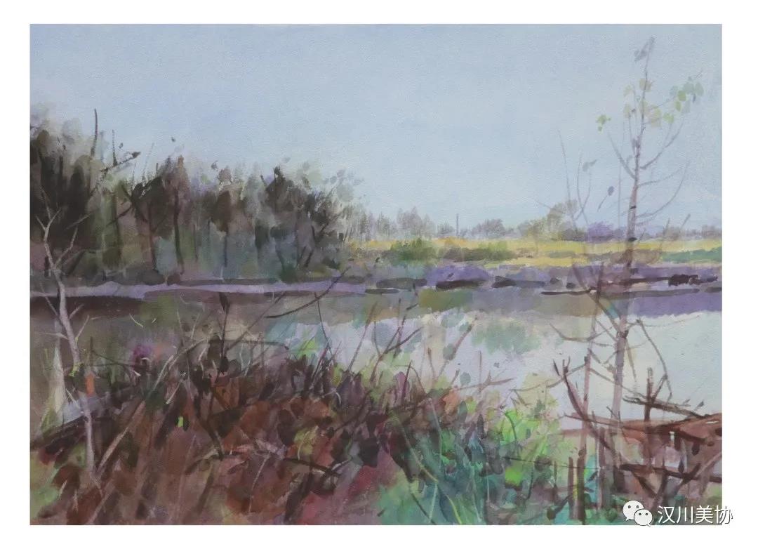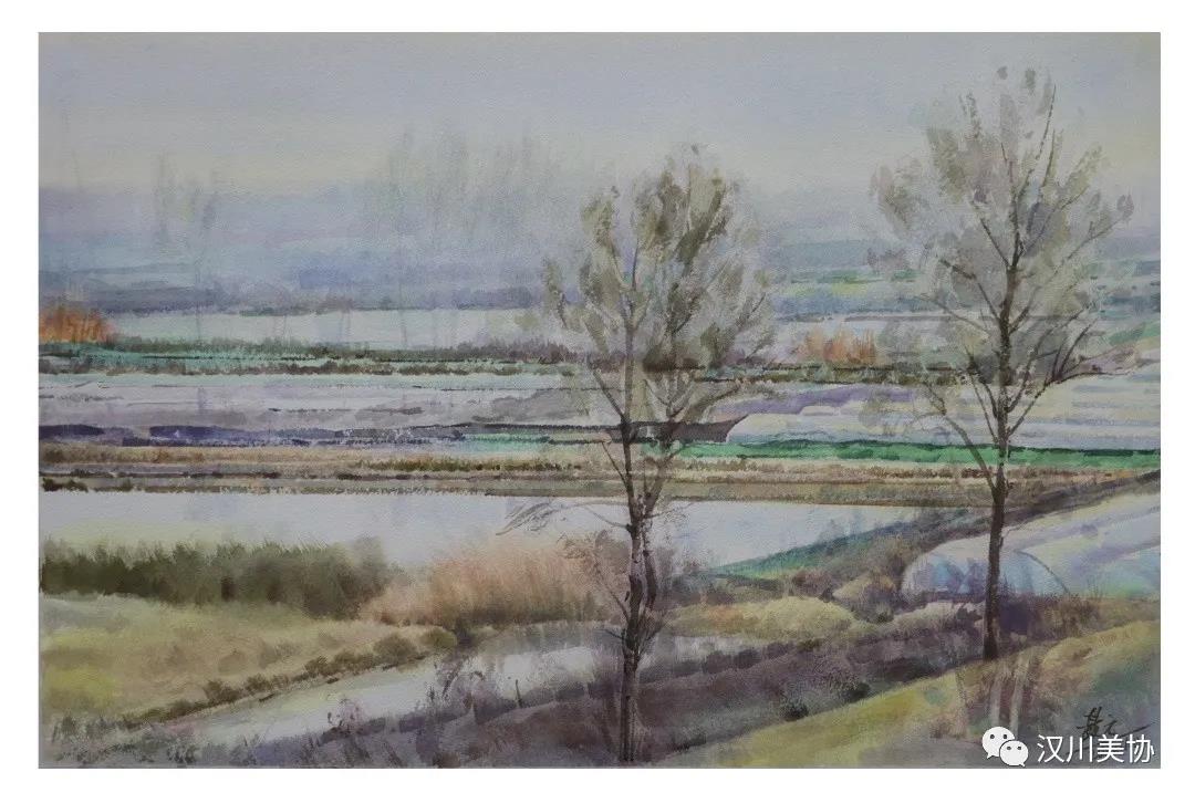《汉川印象-金水路西边的一片田》水彩画,38cm*54cm
