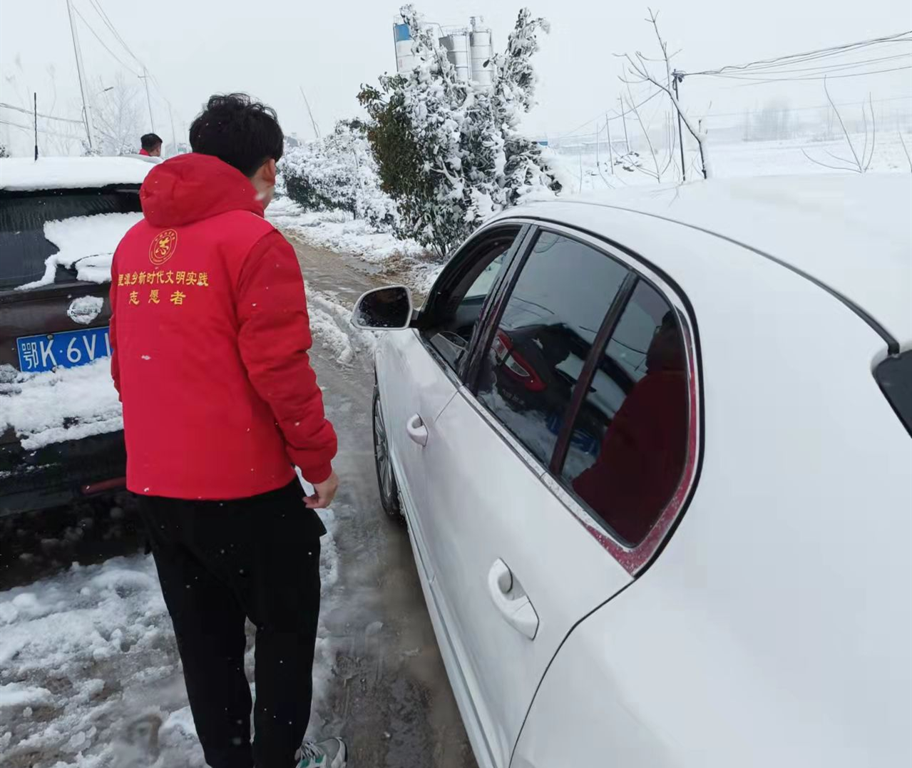 2月7日,汉川市普降大雪,道路积雪严重,加之春节返工返岗期间往来车辆较多,里潭乡八新线路段发生两车相撞事故。乡政府工作人员周坤闻讯紧急汇报领导后,与同事向楠赶赴现场,指挥交通秩序、疏通道路,保障交通安全。
