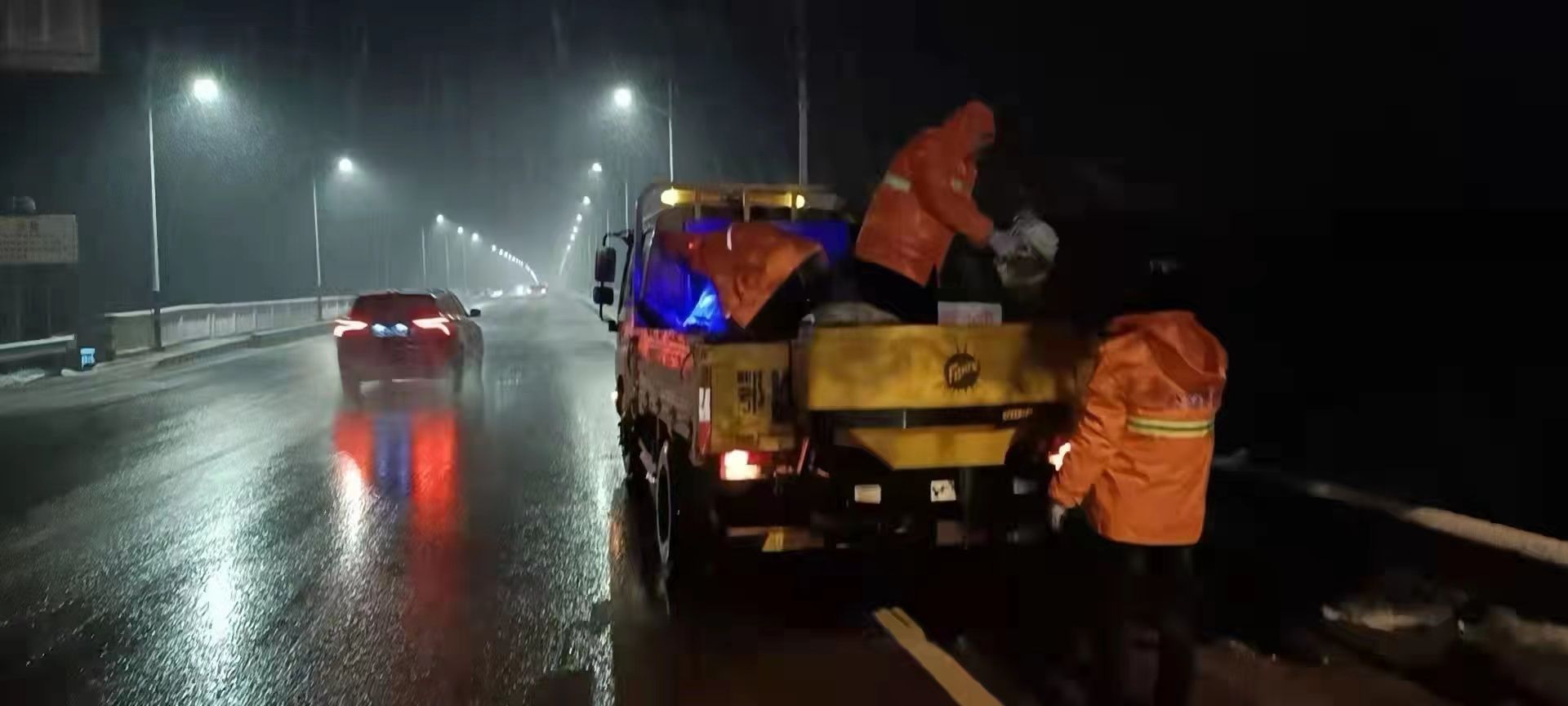 2月6号(正月初六)晚上九点,我市突降大雪,市公路事业发展中心第一时间启动恶劣天气应急预案,火速集结中心全体职工,在全市易结冰路段铲雪除冰,并调配撒盐机对所有管辖桥面及长坡、陡坡路段进行融雪剂布撒。同时加强巡查力度,及时掌握路况,迅速发现和处置险情。