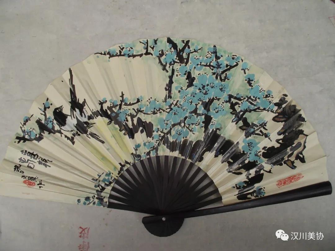 ▲《喜报春》国画,扇面