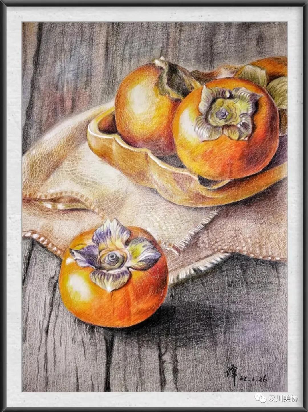▲《吉祥柿子》彩铅画