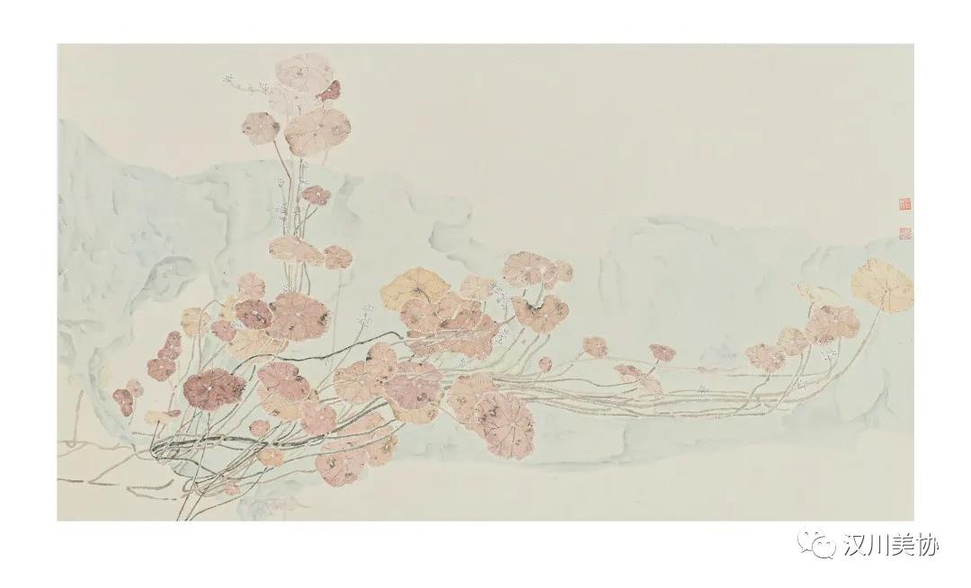 ▲《草木吟之一-铜钱草》国画,60cm*33cm