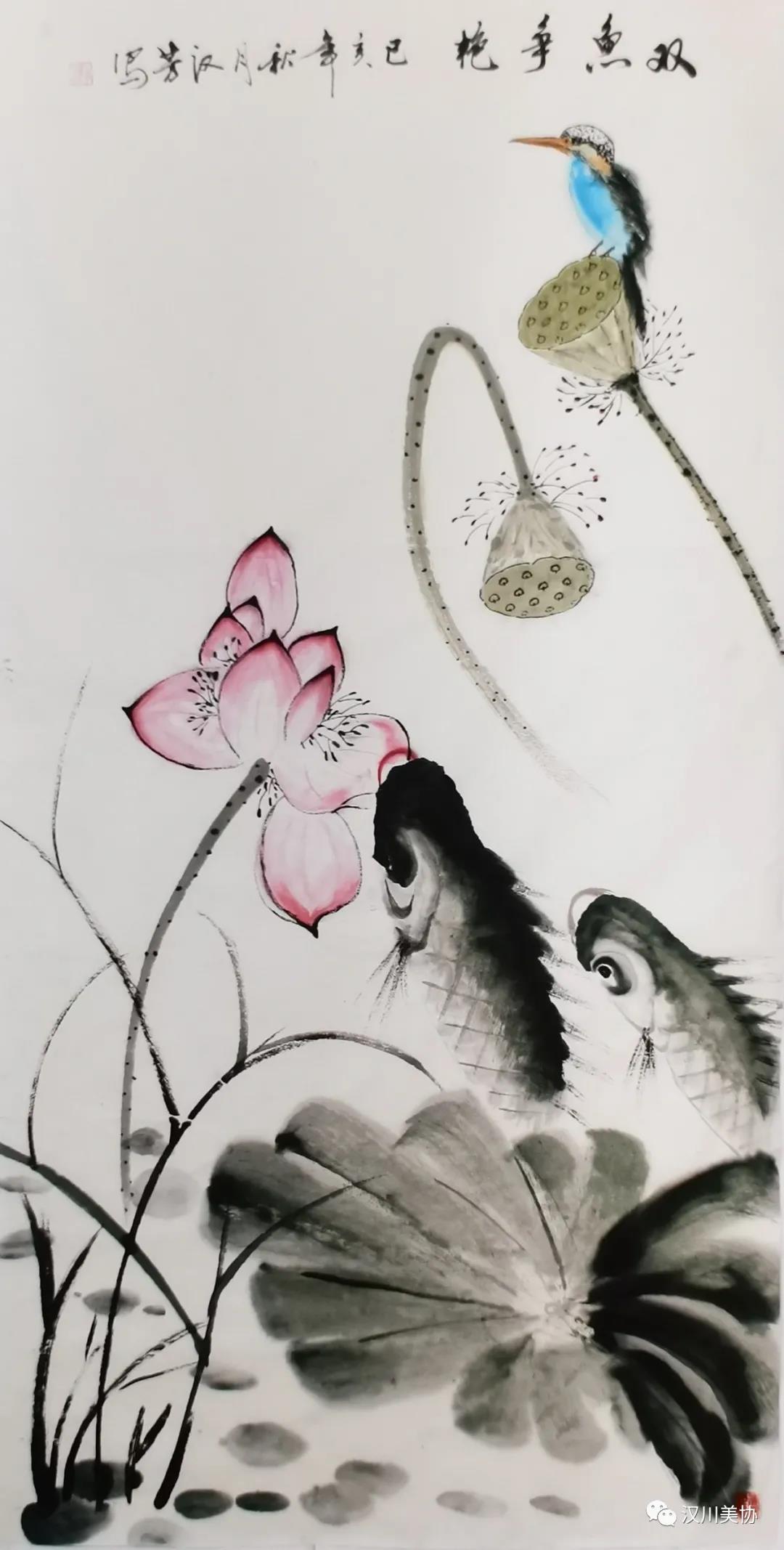 ▲《双鱼争艳》国画,4尺