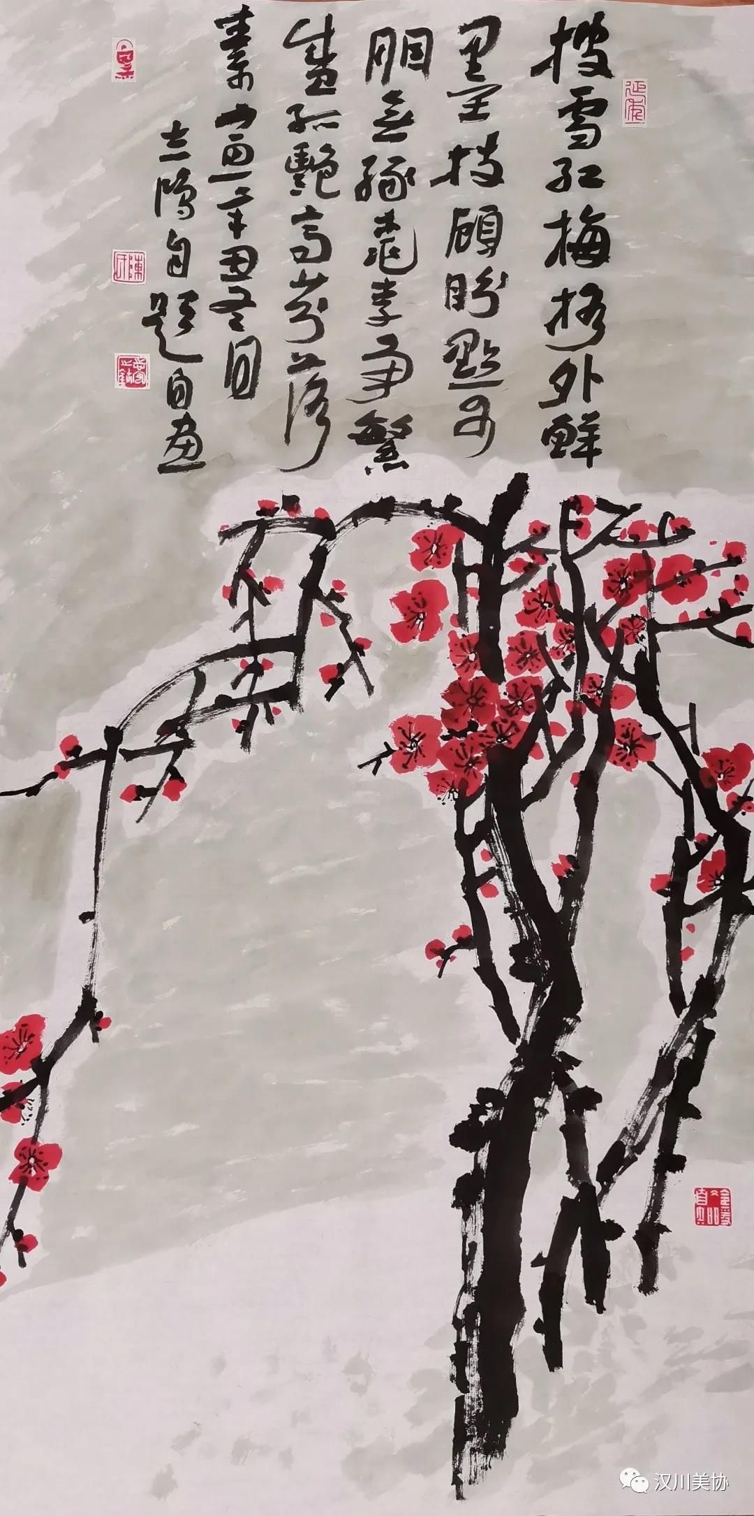 ▲《披雪红梅格外鲜》国画