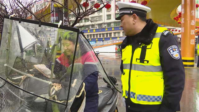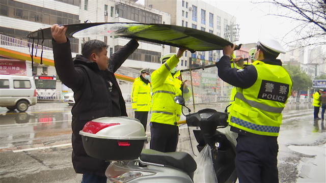 云梦县交警大队民警陈小龙:“我今天是第三次来汉川进行交通执法,感觉比以往的两次检查明显得到了改善,电动车安装遮阳伞对群众安全危险性非常大, 这次明显的减少,摩托车的驾驶证,我也检查了,都已经普遍都有了,非常好。 ”